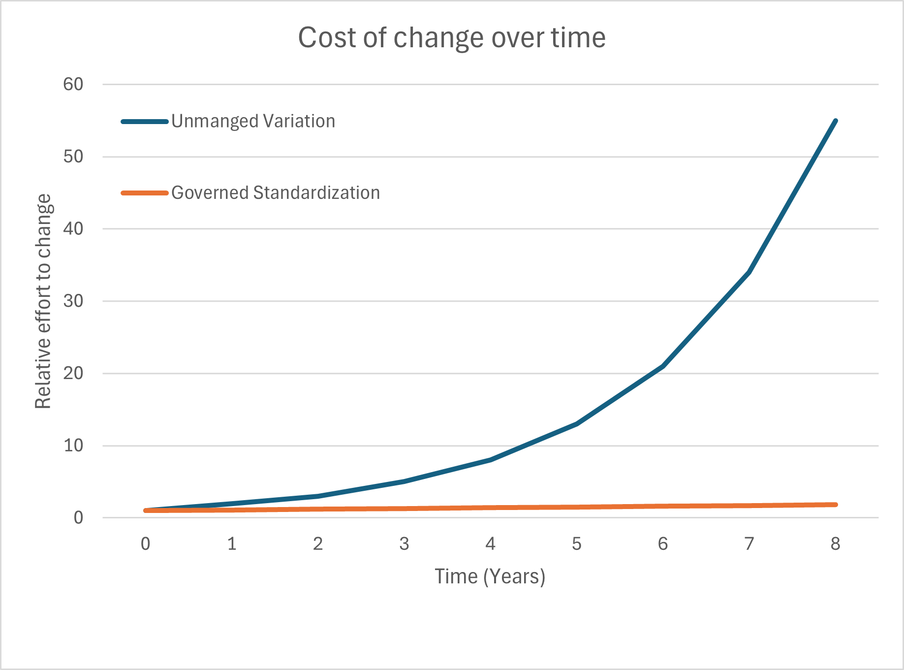Many organizations can handle complexity when it is intentional and governed. The real problem is unmanaged variation - when every application becomes its own world: